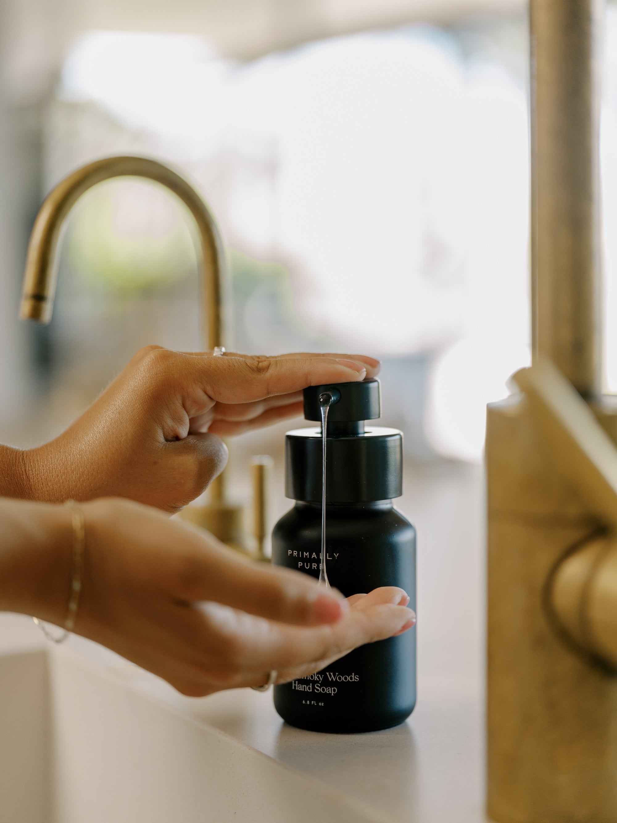 The Crisp Smoky Woods Hand Soap is packaged in a 6.8oz pump bottle.